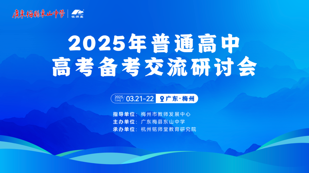 3月21日至22日,广东梅县东山中学成功举办2025年高考备考研讨会。本次研讨会由梅州市教师发展中心指导,东山中学主办,杭州铭师堂教育研究院承办,吸引了来自梅州、揭阳、惠州、汕头、河源等粤东地区60余所高中的600余名教师代表参会。会议围绕新高考改革趋势、备考策略及区域教育协作等议题展开深入研讨,为粤东地区2025年高考备考工作提供了重要参考。