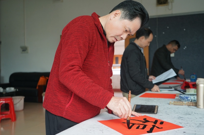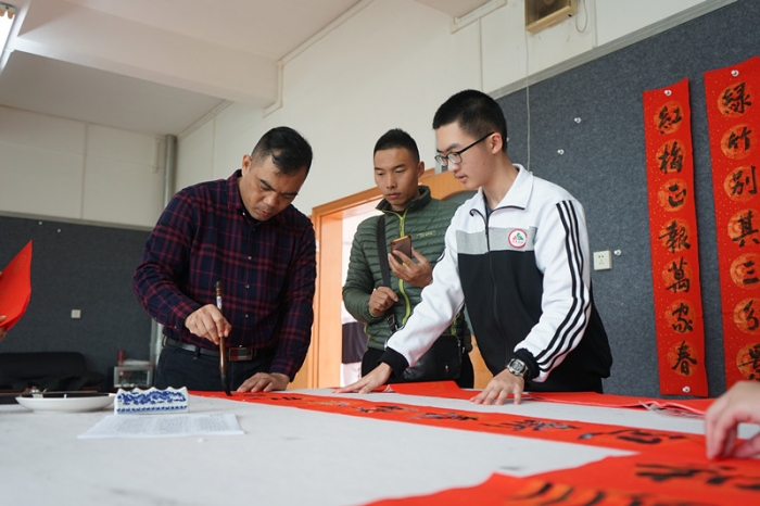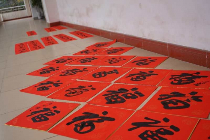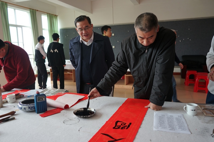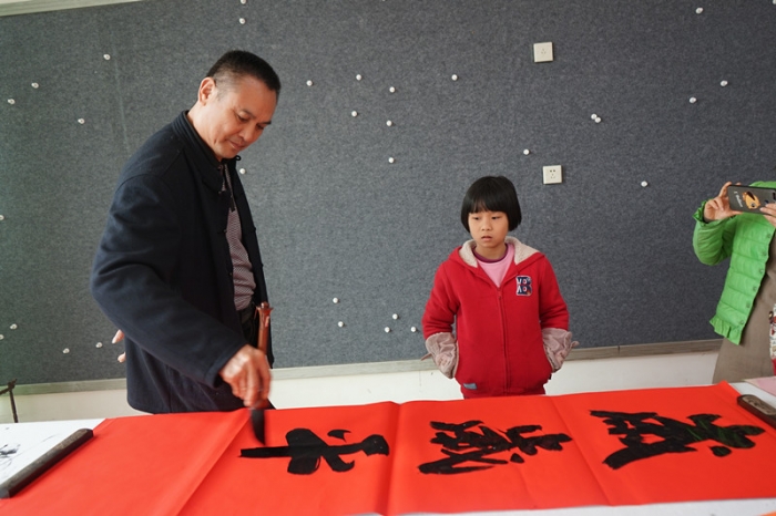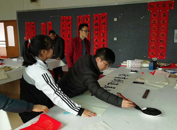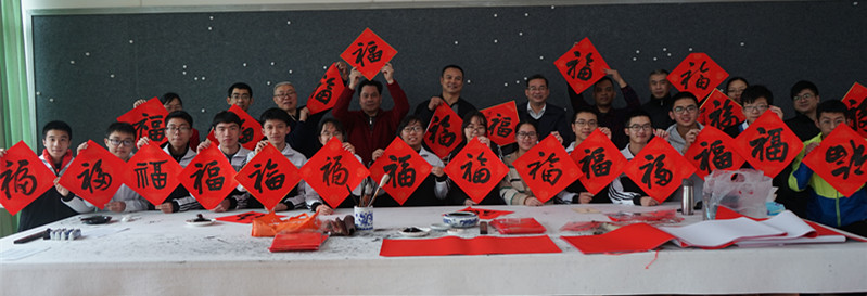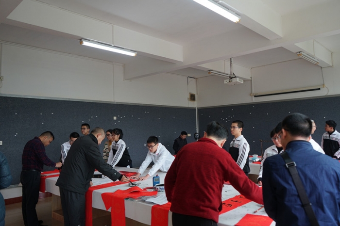 2019年1月27日上午,为丰富校园文化生活,传承优秀传统文化,按学校部署,由工会协调,东山中学教师书法协会邀请了数位梅州书法名家,在尊师楼四楼书画室举行了“东山中学现场挥春送福活动”。