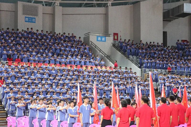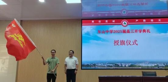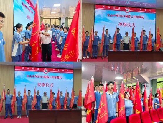 典礼在全体师生齐唱东山颂的激昂歌声中达到高潮,各班班长挥舞新班旗,带领同学们开启高三新篇章。