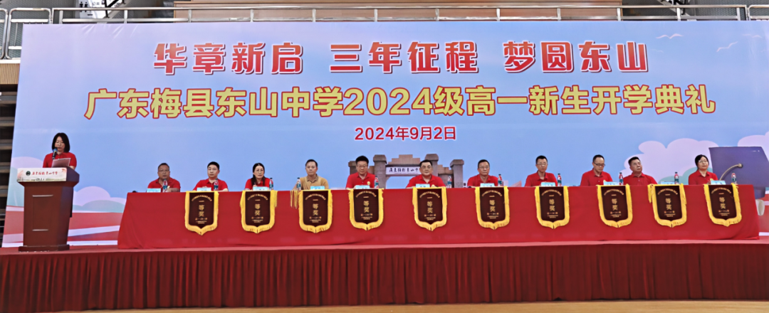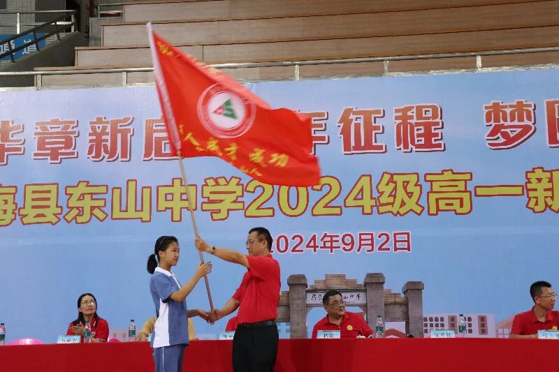 张开贤副校长为每个班级授班旗,勉励同学们在东中三年通过不断提升自己的道德品质、学习能力和综合素质,努力为实现自己的人生目标而奋斗,在东中走向成人、成才、成功之路。执旗人挥动手中的班旗,迎接新的开始!