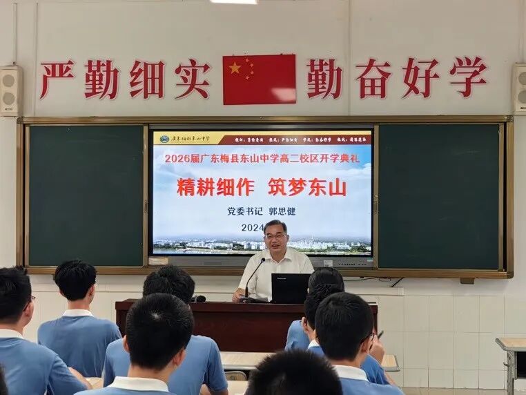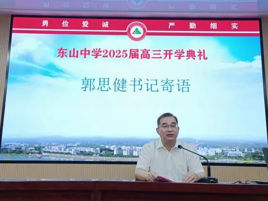 8月1日上午,高三校区在阶梯教室举行了以“追逐梦想,勇攀高峰”为主题的开学典礼。郭思健书记以“书写拼搏故事,绽放青春光彩”为主题,回顾了学校2024届高三取得的成绩,并肯定了2025届高三学子新学年良好的开局。他寄语同学们:以崇高的理想对待高考这一重要时刻;拼搏是通往成功的金钥匙;永远不要怀疑努力的价值;运动是治愈一切的良药;要有探索真理的精神。并提出了一个要求:成为吃好饭、睡好觉、做好操、读好书、考好试、上好校的“六好学生”。最后,郭书记祝愿同学们在新的学年里,心怀勇气,向阳而生,努力耕耘,静待花开,眼中有光,梦想成真。