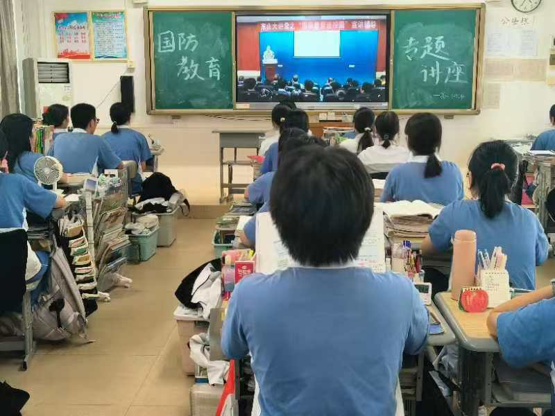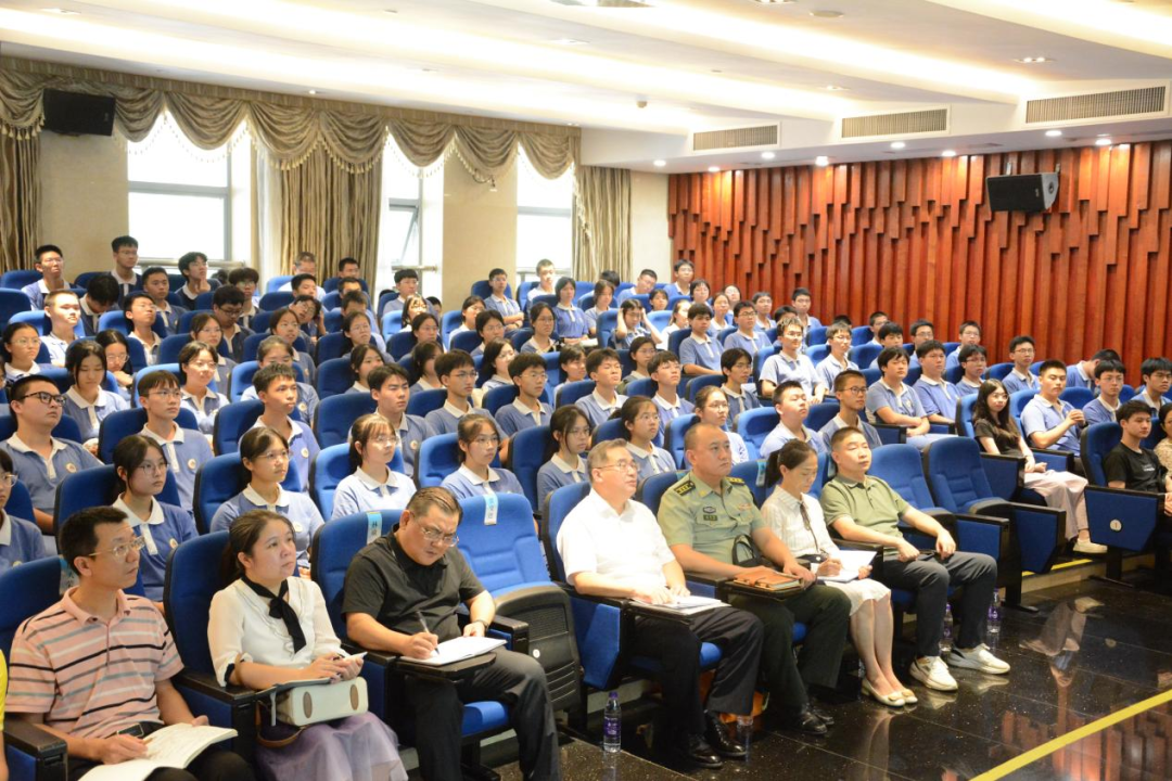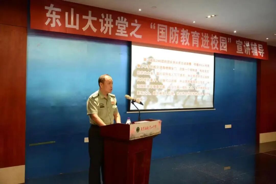 汇聚强国青春力量,凝心聚力铸魂育人。2024年9月25日,学校在体育馆新闻发布厅举行国防教育专题讲座,讲座由梅州市委常委、梅州军分区大校政治委员贾文进同志主讲。梅州军分区政治工作处上校主任张银峰、中校干事汤维,东山中学党委书记郭思健、校长林敏、党政办主任张佳、高二校区校长杨茹波、电教中心主任田良、学生科科长廖大荣、团委负责人刘煌,以及高二校区3个班的同学共180多人在现场参会,高二校区其他班级的同学在原教室通过视频直播收看专题讲座。讲座由党委书记郭思健主持。