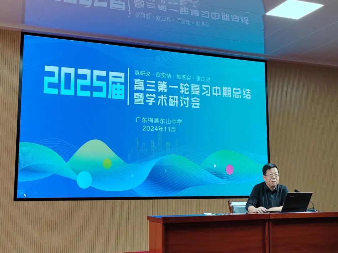 为认真总结和巩固2025届第一轮复习备考已取得的阶段性成果,研讨复习策略,提升复习实效,做到“真研究、查实情、抓落实、重成效”,广东梅县东山中学于11月26日下午成功举办了“2025届高三第一轮复习中期总结暨学术研讨会”。此次会议分为语文、数学、英语、物理、生物、化学、历史、地理、政治9个专场,除我校高三全体教师外,还特邀揭阳一中、潮州金山中学、汕头一中、畲江中学、联合中学、乐育中学、大埔田家炳实验中学、大埔家炳一中等学校的高三教师代表和我校高一高二教师代表参加,市教育局教师发展中心教研员亲临指导。大家齐聚一堂,共话高三第一轮复习的成果与未来发展方向。市教研员和我校教学管理部门相关人员及高三校区行政在研讨会上进行了发言和总结。此次会议吸引了众多教育界人士参与,包括市教师发展中心教研员,学校高三全体教师,高一高二教师代表,以及来自兄弟学校(汕头一中、揭阳一中、潮州金中、畲江中学、大埔田家炳实验中学、大埔家炳一中、乐育中学、联合中学)的高三教师代表,总计230多人参会,大家齐聚一堂,共话高三第一轮复习的成果与未来发展方向。