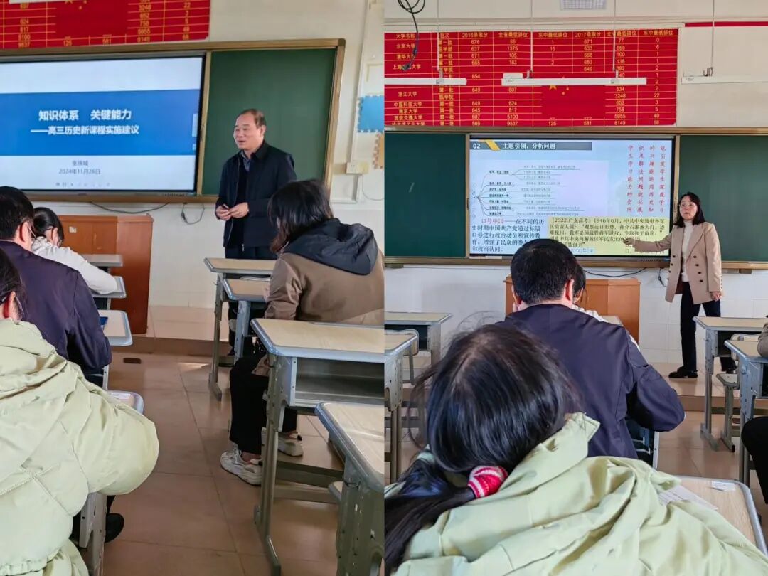 历史分会场由高三历史备课组长罗柳光老师主持。李妙凤老师作了《落实必背知识,提升关键能力——浅谈高三历史一轮复习策略》为主题的报告,分享了备考的经验,特别强调讲重点内容、提关键问题、多看多想、多写多讲、提升关键能力,还总结了科组的学科培优策略(包括知识深化、思维提升、技巧优化)、临界生培养策略(包括精准定位、情绪价值、方法指导)。李老师的报告精彩纷呈,赢得与会老师的一致好评。接着汕头一中的老师也分享了备考感想。市教研员张铁城老师对李妙凤老师的汇报和学校历史组一轮复习的成果给予了高度赞赏,他特别强调接下来备考工作的两个重点:一是要整合教材,完善体系;二是要以题促教,提升能力。最后,校区石勇副校长充分肯定了此次中期研讨会的重要意义,并希望接下来要继续努力,以期在历史学科上取得更优异的成绩。