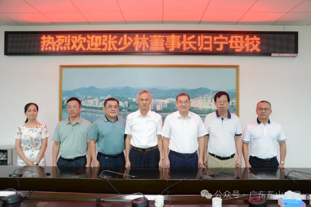 7月28日上午,学校新五届校董会张少林董事长归宁母校,出席老校区阶梯教室升级改造竣工揭牌仪式,并与学校领导班子及部分行政座谈交流。
