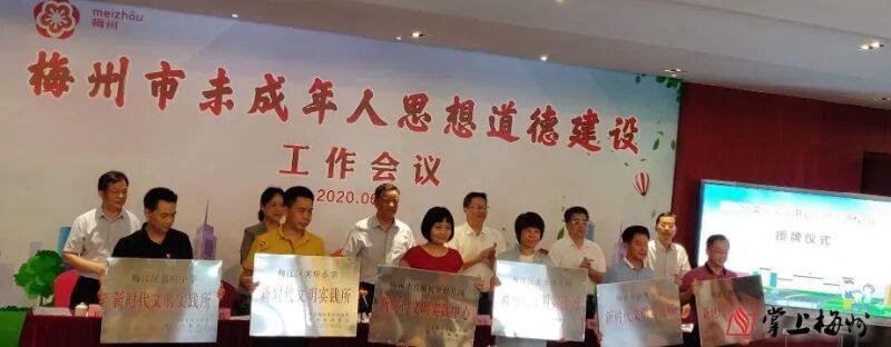随后,召开工作会议回顾总结2019年梅州市未成年人思想道德建设工作,部署2020年工作。市委常委、宣传部部长、市文明委常务副主任、市未成年人思想道德建设工作领导小组组长陈晓建主持会议。会上,向12所城区学校代表授新时代文明实践中心(所)牌匾;表彰了2019年广东“新时代好少年”、2019年梅州市“新时代好少年”;传达了全省文明校园创建工作推进会暨乡村学校少年宫建设培训班会议精神;广东梅县东山中学、丰顺县汤坑镇第一中心小学、梅江区人民小学先后就文明校园创建、新时代文明实践活动进校园、乡村学校少年宫项目建、管、用的经验做法作交流发言;市委政法委、市教育局作专题发言。