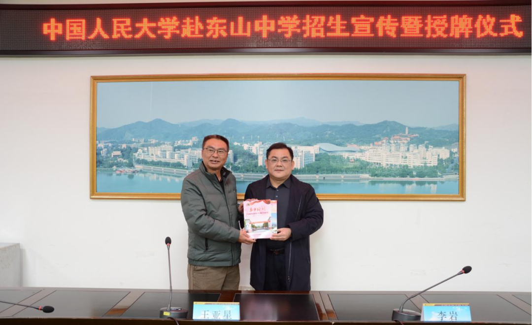 中国人民大学王亚星教授从办学沿革、专业特色、学科优势等方面进行了简要介绍,指出两校具有办学悠久、底蕴深厚、红色基因等鲜明的共性,期盼两校能充分发挥各自优势,继续开展紧密合作,争取“大中”衔接有新进展、新突破,并寄语东中学子要有大志向、能吃苦、敢拼搏,努力考取名校,为党和国家做出更大贡献!