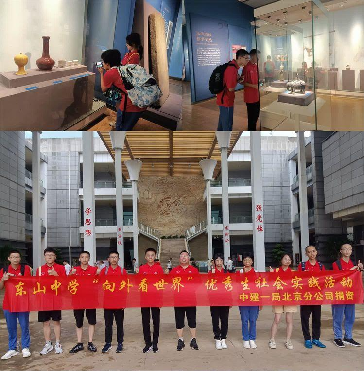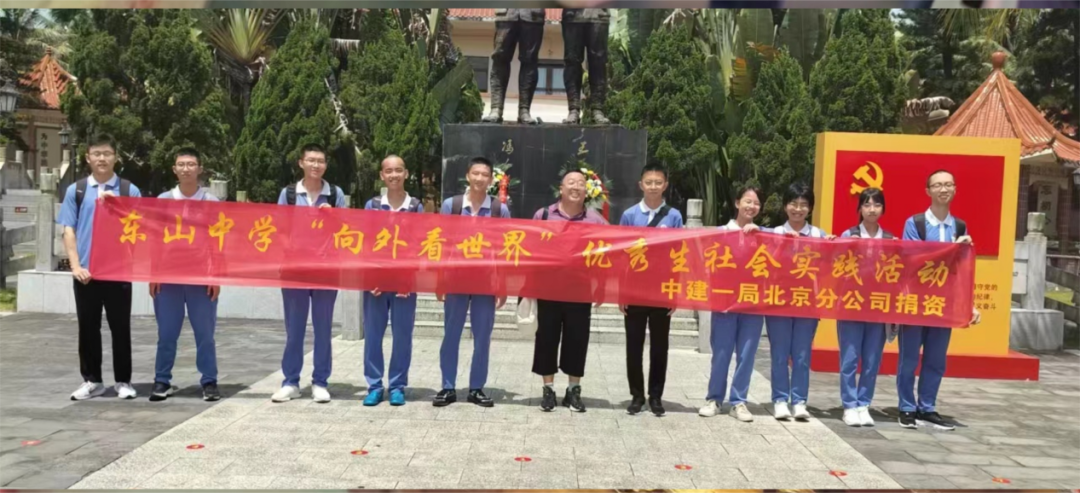 中国建筑一局(集团)有限公司北京分公司,是以房屋建筑工程总承包为主,兼营投资建造、机电安装、基础设施等业务的企业。中建一局北京分公司热心公益,回馈社会,为激励我校学生勤奋学习,勇于实践,立报国之志、做时代新人,该公司捐资10万元赞助东山中学高一、高二级10位优秀学生代表在暑期开展“向外看世界 勇担民族复兴重任”社会实践研学活动。此次研学活动在校庆110周年之际规划,学校安排由高二校区承办。从7月初启动“向外看世界 勇担民族复兴重任”的暑期社会研学方案开始,高二校区积极制定研学计划,与校友协商规划研学路线,高一、高二校区选拔优秀学生,与第三方公司签订协议,按照市教育局研学报备流程上报备案,提前预约清华北大校园研学的内容,与研学学生家长签订安全责任书,各项工作在一周内有序推进,得到多方的支持配合。此次活动学校组织10位优秀学生到企业生产一线体验生产者、建设者的艰辛,同时安排学生到清华北大高等学府研学,感受知识改变命运的真谛,从而为学子们未来的奋斗坐标夯实基础、明确方向。通过这次外出社会实践研学活动,让参与的学生讲述所见、所思、所想、所行,汇集成文回校宣传,接力传承东山精神,辐射、带动、激励学子们胸怀“国之大者”,勇挑强国重任,争做有理想、敢担当、能吃苦、肯奋斗的新时代好青年!
