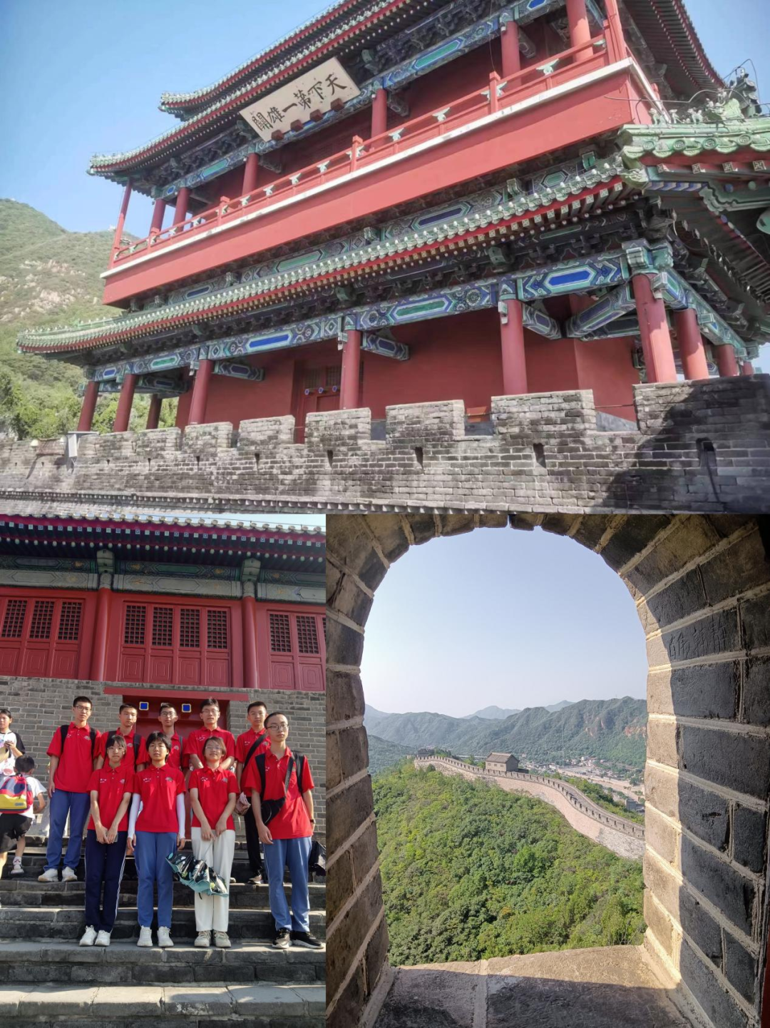 居庸关被称为“天下第一雄关”,地势险要,有“一夫当关,万夫莫开”的气势。居庸长城气势磅礴,象一条巨龙盘踞在祖国的北面,绵延数万里,纵贯两千年,雄伟壮观。让学生亲自登临万里长城,感受这座古老城墙的风雨沧桑,体验“不到长城非好汉”的气魄,踏着历史的脊梁,叹远去的尘土飞扬,赞如今的繁华盛世,和谐太平,登长城做好汉,观长城内外祖国大好河山,增强了学生的社会责任感和历史使命感。