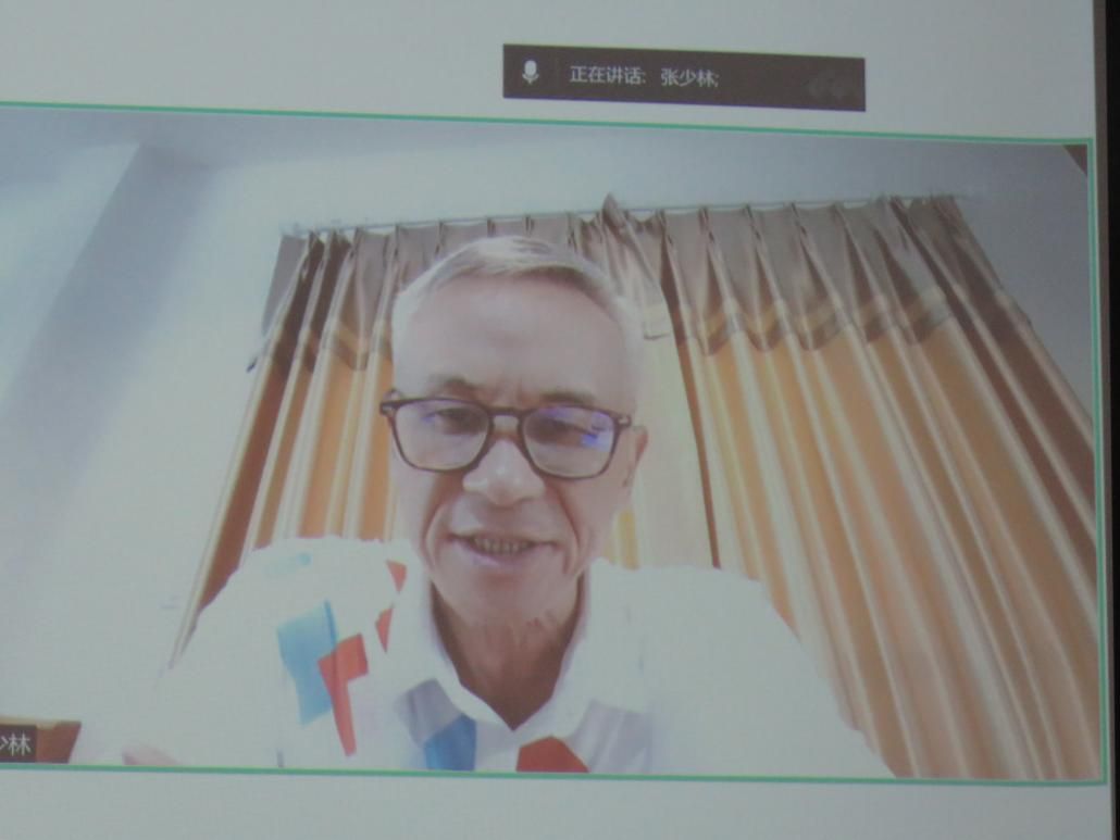 ▲校董会张少林董事长在线上作主题讲话