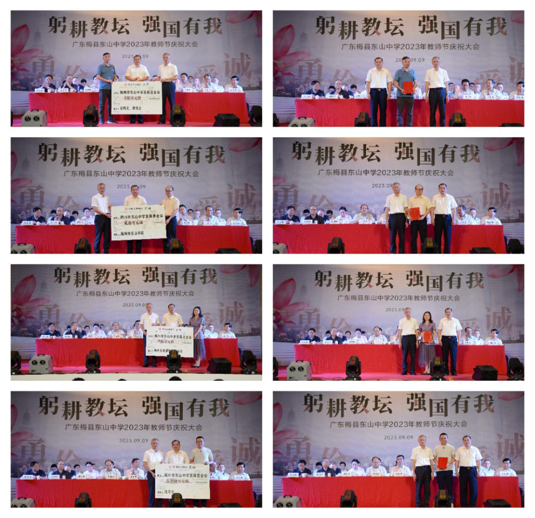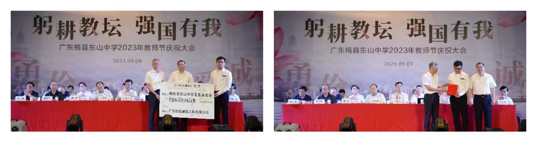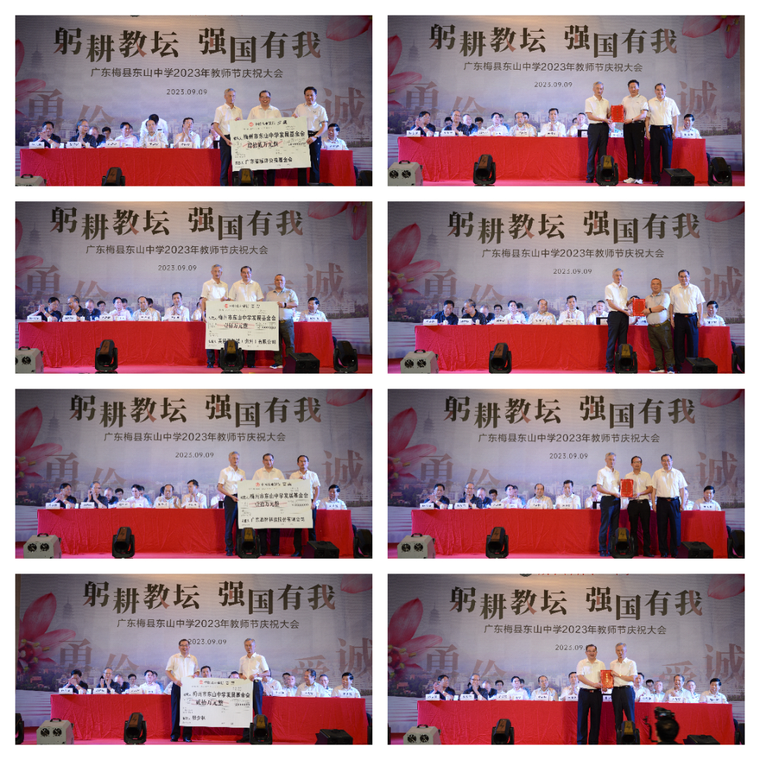 庆祝大会还对今年“4月1日以来捐赠或认捐达10万元以上”的校友乡贤、企业举行捐赠仪式。张少林董事长代表东山中学发展基金会接受捐赠并颁发捐赠证书,郭思健校长见证。众多捐资及奖项的设置,令广大师生备受感动、备受鼓舞、倍增感恩奋进之力!