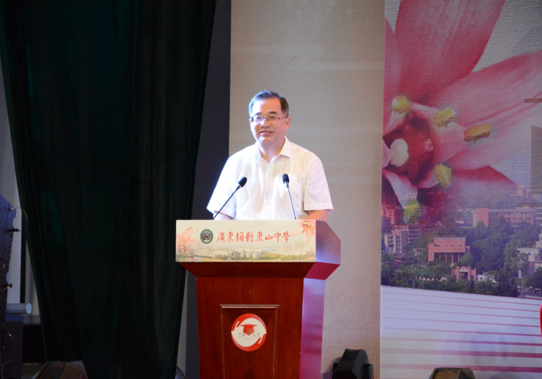 梅州市政府黄伟华副秘书长代表市委市政府向学校教职工及全市教育工作者致以节日的祝福和诚挚的问候,向受表彰的先进集体和个人表示热烈的祝贺,向长期以来关心支持梅州教育事业发展的社会各界人士表示衷心的感谢!他强调,躬耕教坛、强国有我,无疑是时代赋予广大教师的神圣使命。教师是立教之本、兴教之源,承担着让每个孩子健康成长、办好人民满意教育的重任,更是新时代教育事业高质量发展的实践者、推动者。他希望,教师们要坚定理想信念,心怀国之大者;要加强师德修养,静心潜心育人;要紧跟时代发展,提升综合素养。“同时,我也希望广大学子要追求卓越,树远大理想,努力成为国家和社会的栋梁之材;要刻苦学习,培养吃苦耐劳的品质和意志;要拼搏奋斗,通过奋斗实现梦想。”以“慢不得、坐不住、等不起”的拼劲,激发创新进取磅礴力量,齐心协力、奋发有为,不断开创梅州教育高质量发展新局面!