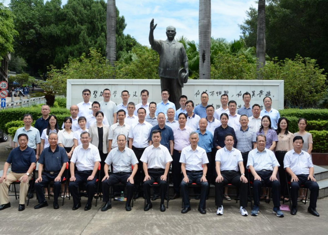 会后,出席会议的领导、嘉宾、校友和学校班子成员、正科级以上中层干部、获得省市级表彰的优秀教师在叶帅铜像前合影。