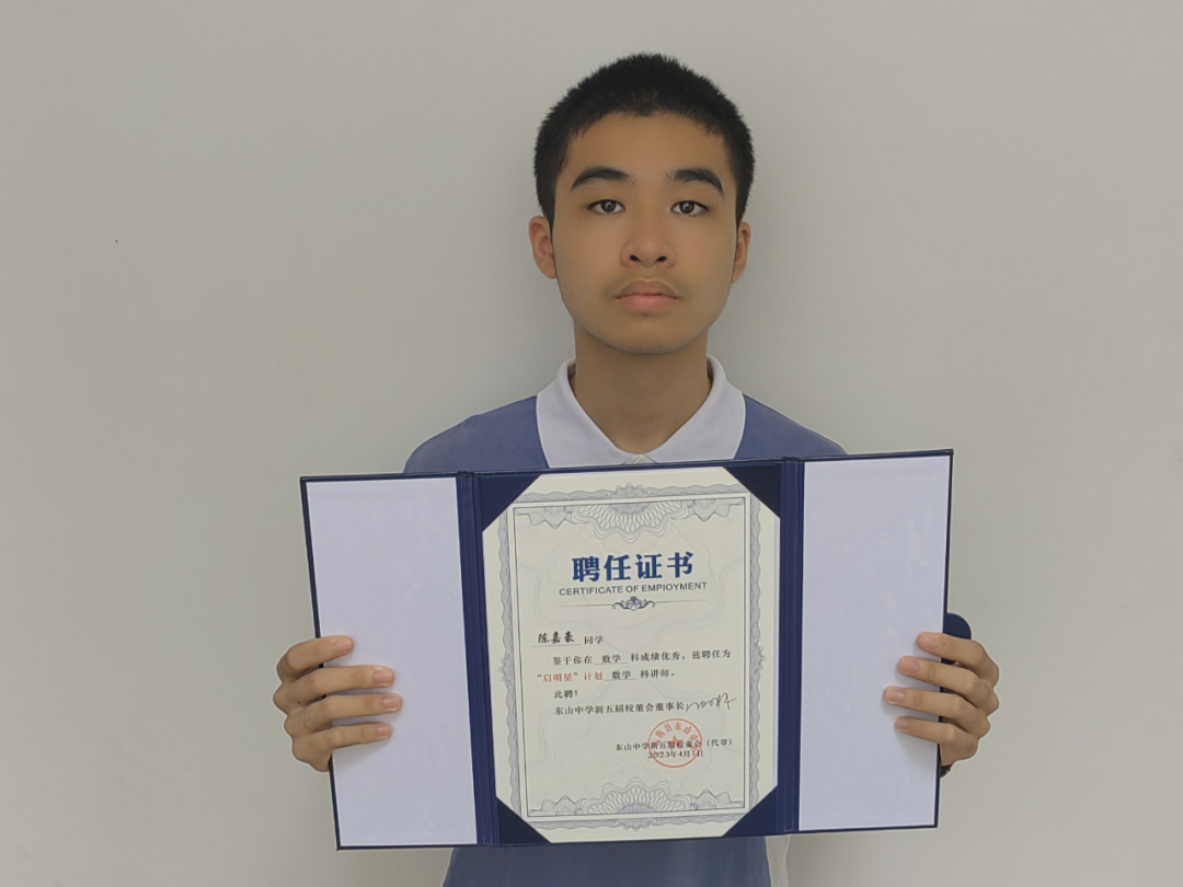 陈嘉豪高一(9)班,“启明星”数学讲师。曾两次取得数学单科成绩年级第一名,四次获得“总分卓越奖”,两次获得“总分优胜奖”,并在英语基础知识竞赛中获得二等奖。座右铭:兴趣是最好的老师。