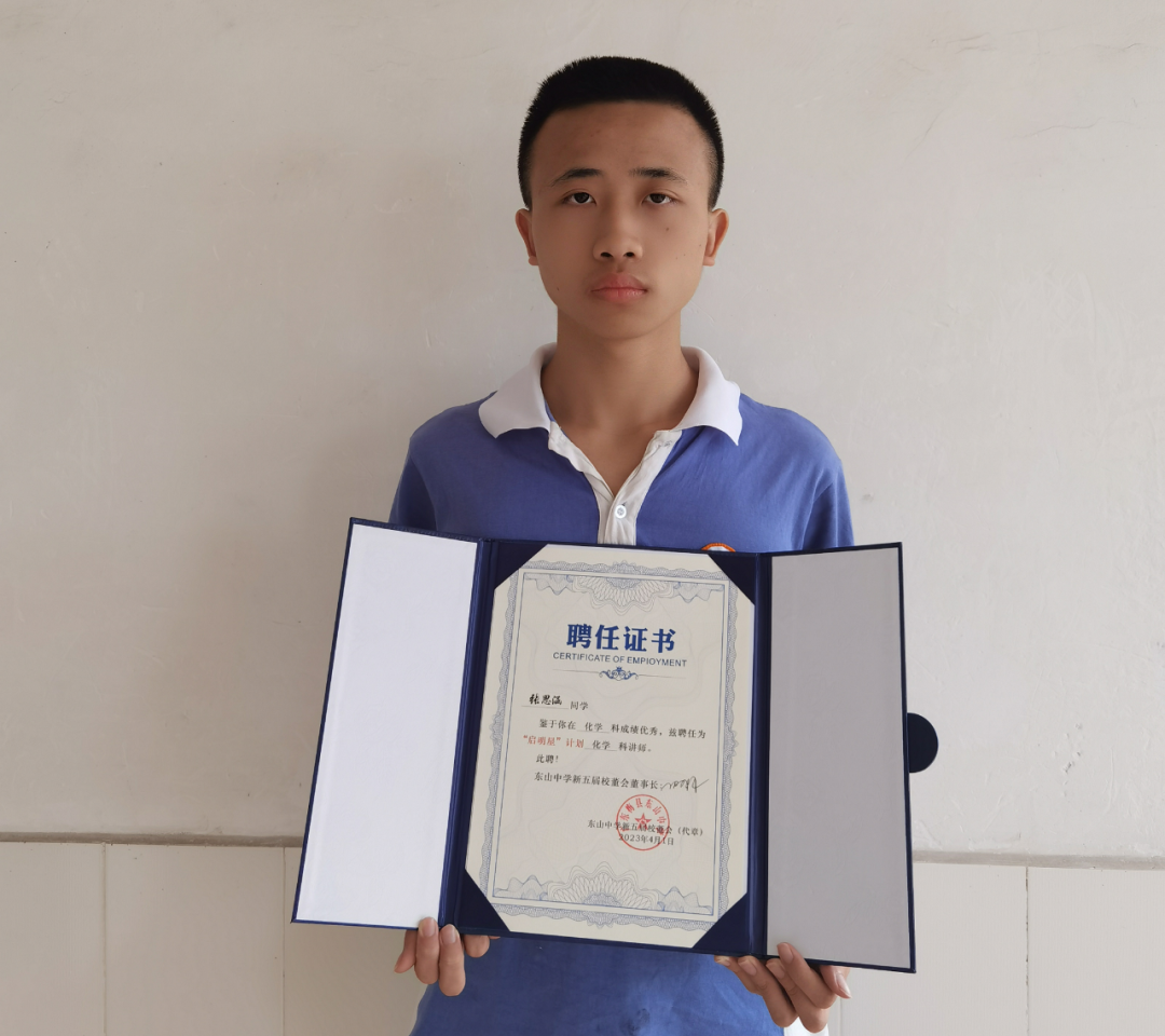 张思涵高一(5)班,“启明星”化学讲师。多次获得总分优胜奖和单科卓越奖;2022-2023年度期中考试荣获综合总分二等奖。座右铭:学无止境。