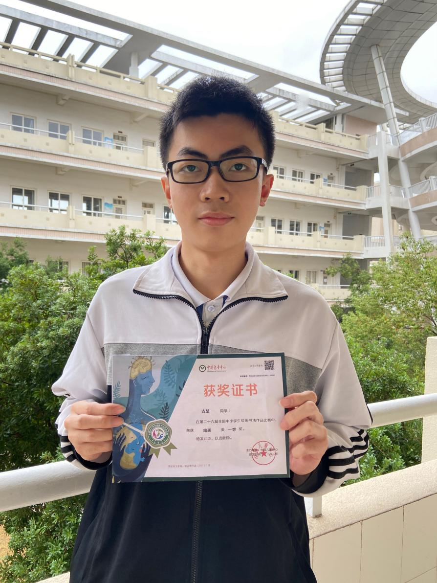学校对本次比赛高度重视,在美术科组师生的共同努力下,古堃同学通过省赛、国赛的层层角逐,最终脱颖而出,取得了全国一等奖的佳绩!祝贺获奖的古堃同学!祝贺美术教研组、学科导师、学科班主任!