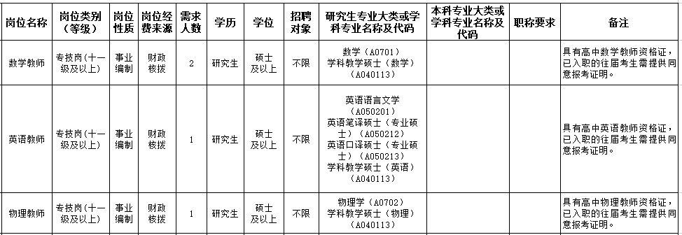 11月28日,梅州发布2023年引进急需紧缺人才公告,计划引进938名急需紧缺人才。这是继7月14日梅州启动实施“青梅计划”后首次发布的人才引进公告。我校此次共引进4名急需紧缺人才,其中数学教师2人、英语教师1人、物理教师1人,均要求硕士研究生及以上学历,具体如下:岗位表