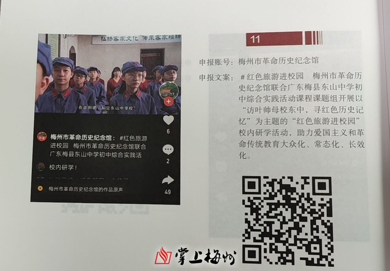 掌上梅州讯 记者获悉,日前,由梅州市革命历史纪念馆联合广东梅县东山中学初中综合实践活动课程课题组开展的“访叶帅母校东中,寻红色历史记忆”校内研学活动短视频荣获“红色旅游进校园”案例作品征集展示活动“优秀短视频作品”称号。
