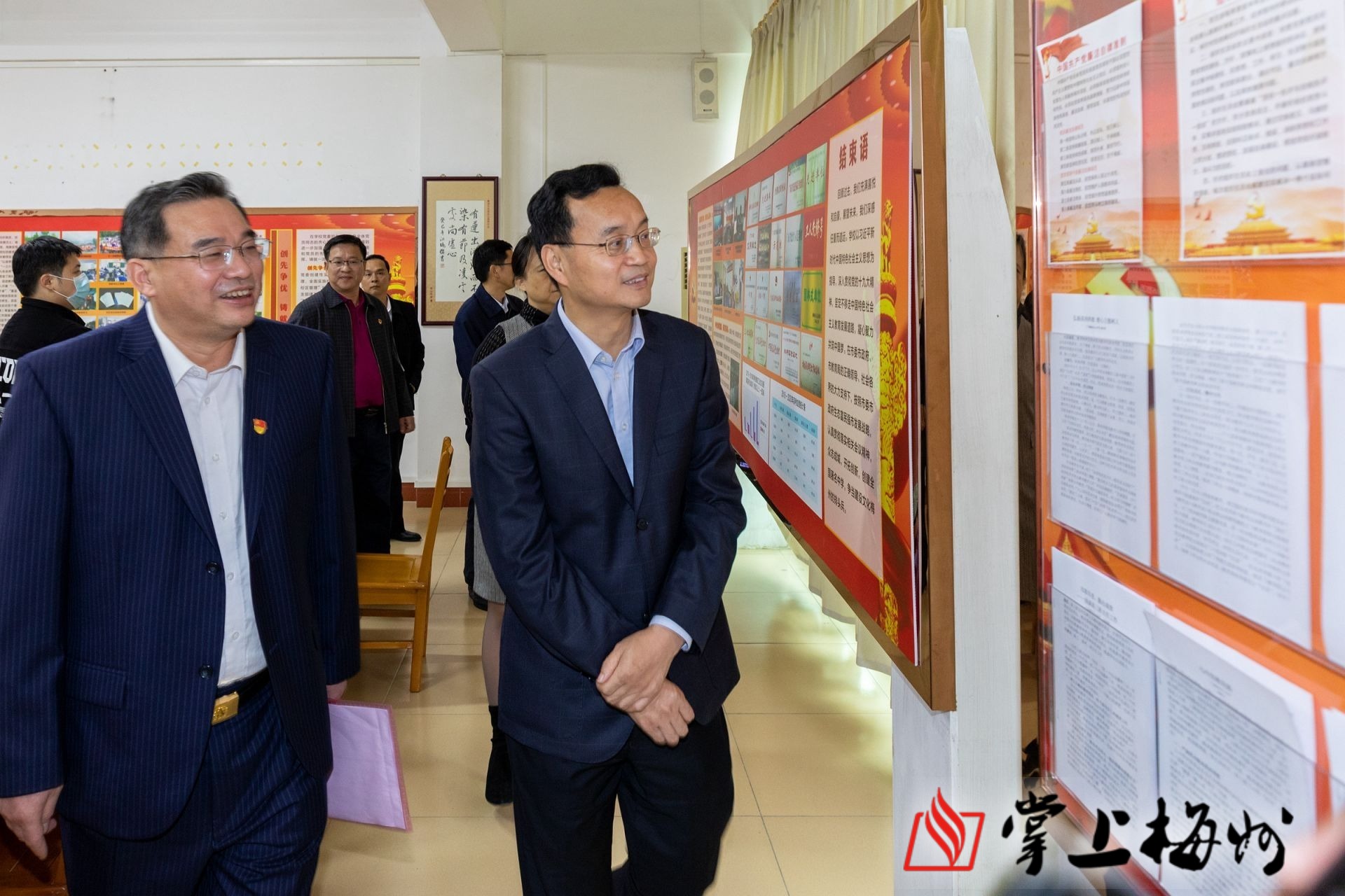 在学校期间,张爱军一行到东山中学党建展室参观,了解学校党建工作,强调要全面加强学校党的建设,充分发挥党支部战斗堡垒和党员先锋模范作用,引领学校健康持久规范发展,为加强和改进学校思政教育、擦亮东山中学教育名片、振兴梅州教育雄风提供强有力的保障。