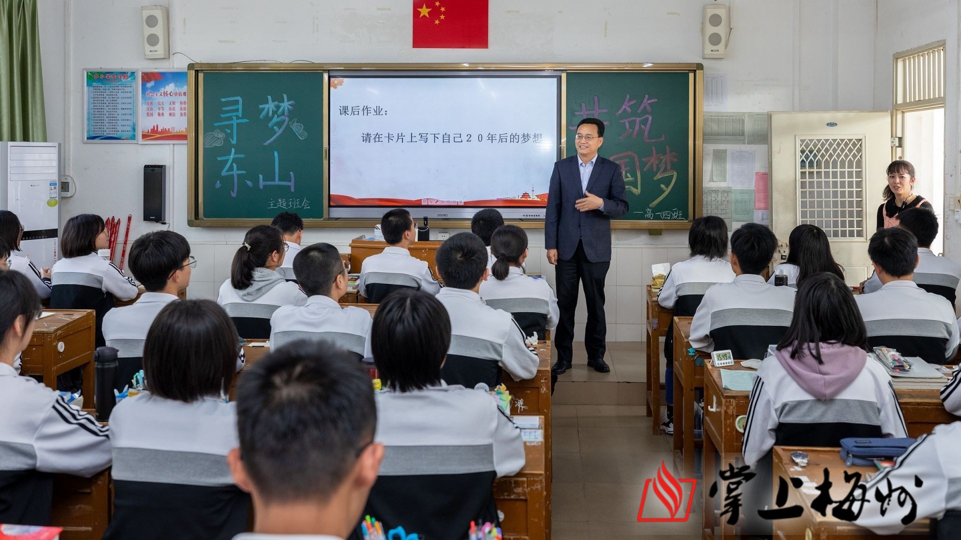 张爱军在观摩主题班会课后勉励东山中学学子。