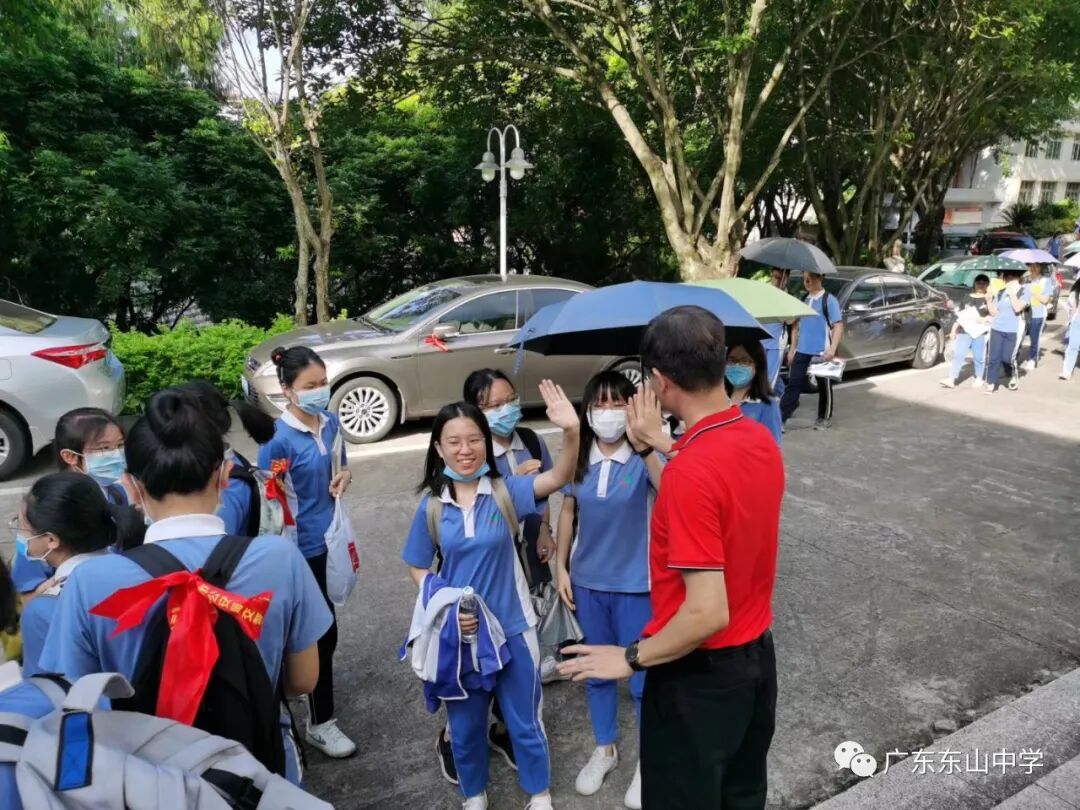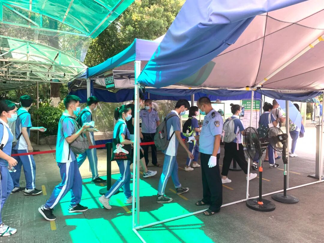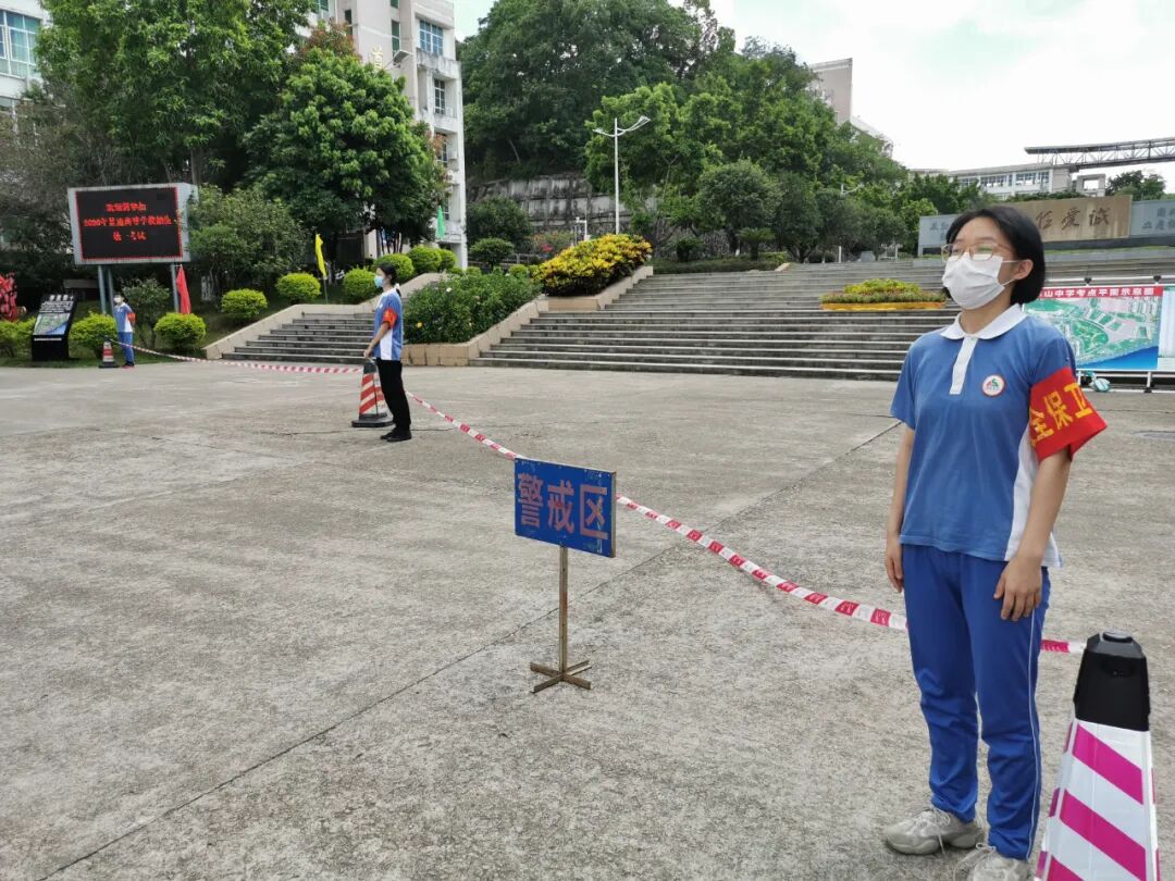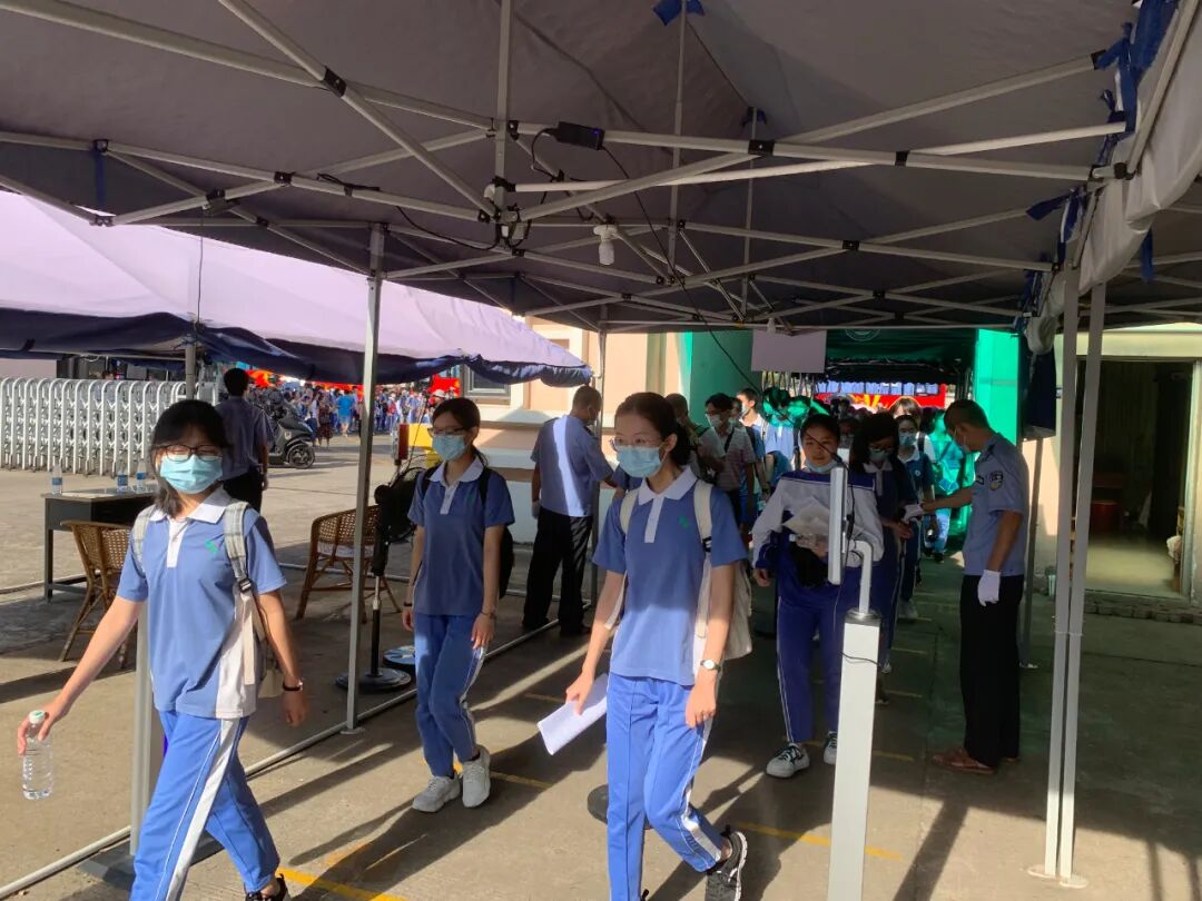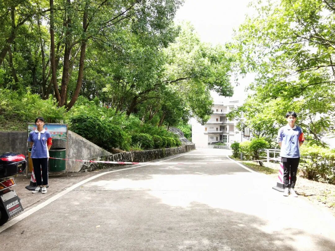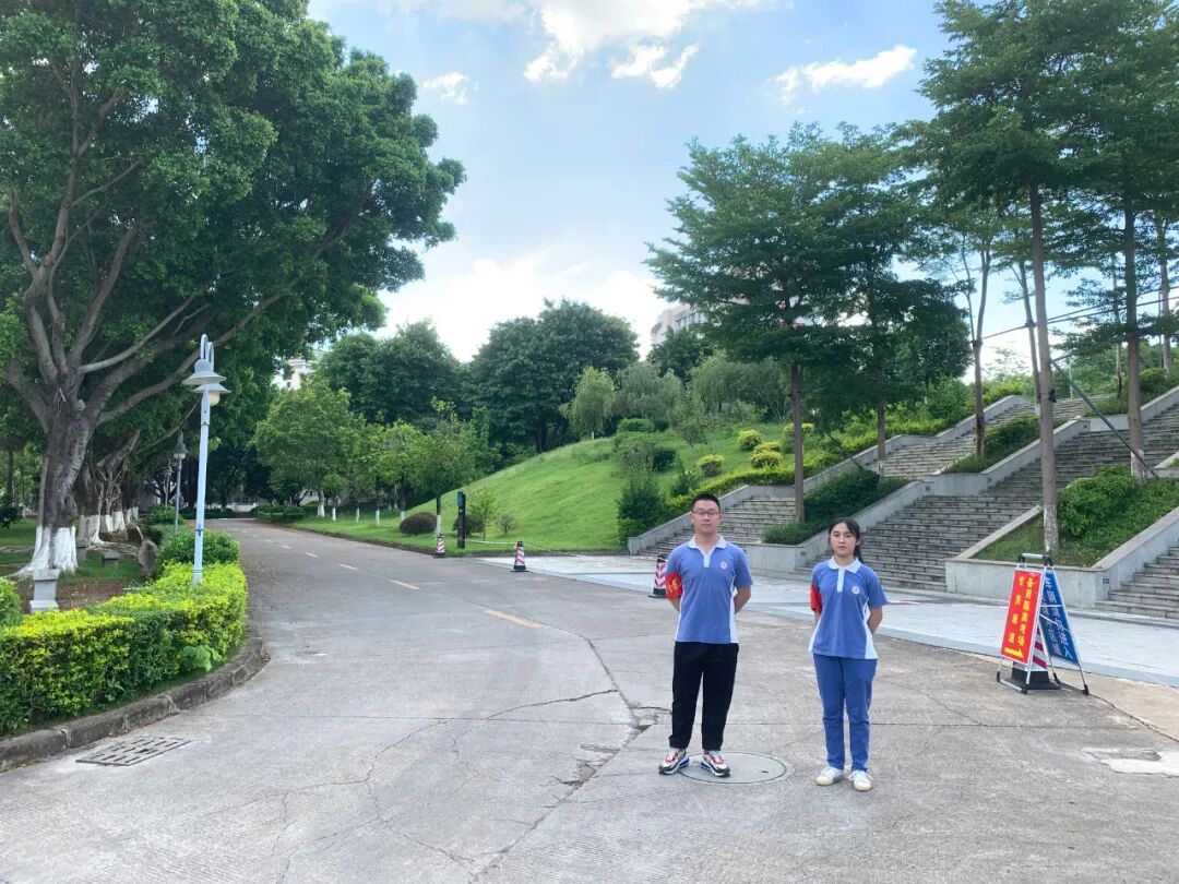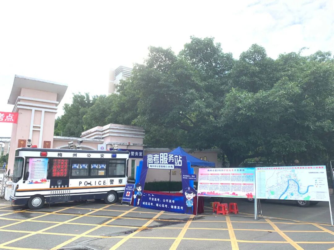 梅州市公安局梅江分局在学校门口设置“高考服务站”和移动警车,安排警察同志值守,为高考保驾护航。市疾控中心也安排专人在学校驻点,守护高考。学校保安人员认真做好考生进场测温,有序组织考生快速通过,维持秩序。还有我们可爱的学生志愿者们,你们的表现棒棒哒!