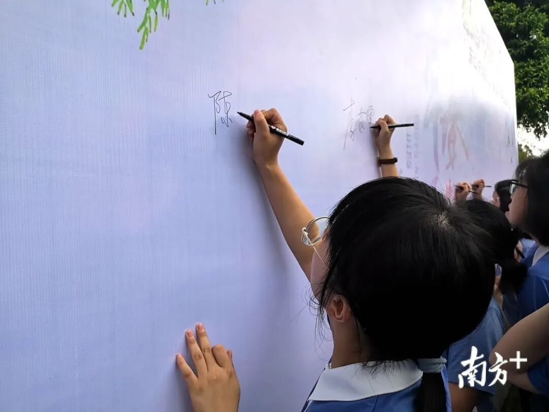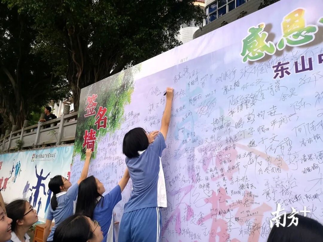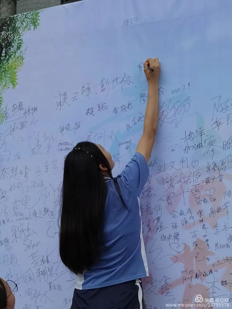毕业典礼后,同学们在签名墙上留下自己的名字和心中想对母校、老师、同学们说的话语,并与老师、同学合影留念。