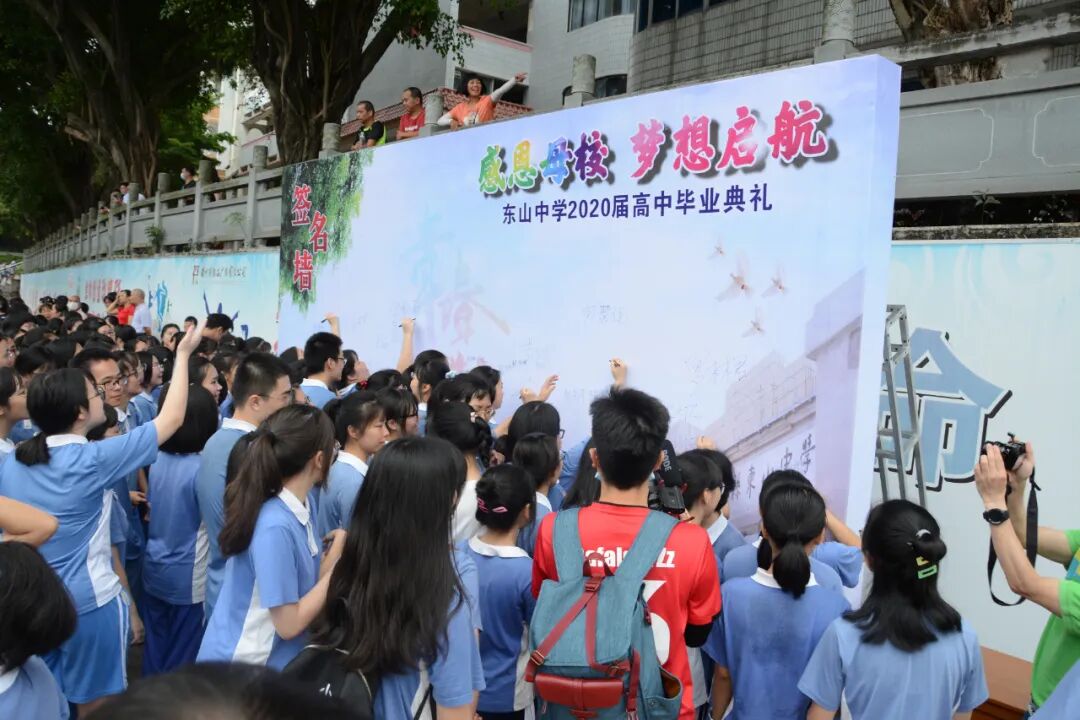 学校副校长、高三校区何兴平校长在发言中回顾了同学们三年来的学习生活,他说,世界这么大,你们早想去看看。今天的毕业典礼,不是一个结束,而是你们人生旅途的一个新起点。请大家记住:你们是东山中学2020届的毕业生,无论今后身处何处,要记住这份情缘,相互支持,共同进步!希望同学们牢记“勇俭爱诚”的校训,厚植家国情怀,勤学善思,提升自我,追求大我,不惧风雨,砥砺前行;大气为人,大智谋事,大爱行天下,努力超越前辈,为父母争光,为老师争光,为母校争光,为祖国争光!