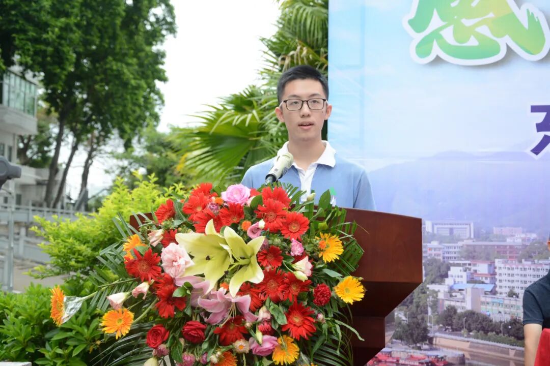 学生代表罗冠宇同学在发言中感谢母校的培育、感谢老师们的辛勤付出、感谢同学之间的相互鼓励和帮助,并表达了“明天的我们依然将仰望星空,展我辈青春之风采;脚踏实地,拓东中百年之辉煌”的豪情壮志和对美好未来的憧憬和向往。