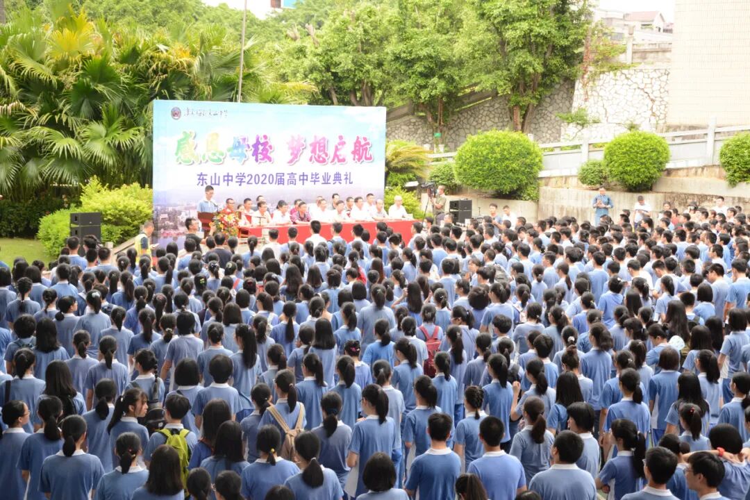 七月的东中校园,绿意盎然、鸟语花香,一如风华正茂的学子们,充满着无限生机与活力。在这样一个美好而又特殊的日子,我们以毕业之名、赴青春之约,共同为别样精彩的高中生活画上圆满句号。7月9日早上,一场以“感恩母校、梦想起航”为主题的、仪式感满满的2020届高三毕业典礼在马蹄形球场顺利举行。学校领导班子成员、高三教师和1500余名高三毕业生参加典礼,部分学生家长在旁观礼。毕业典礼在雄壮的国歌声和优美的东山颂中开启,高三校区杨茹波校区副校长主持典礼。