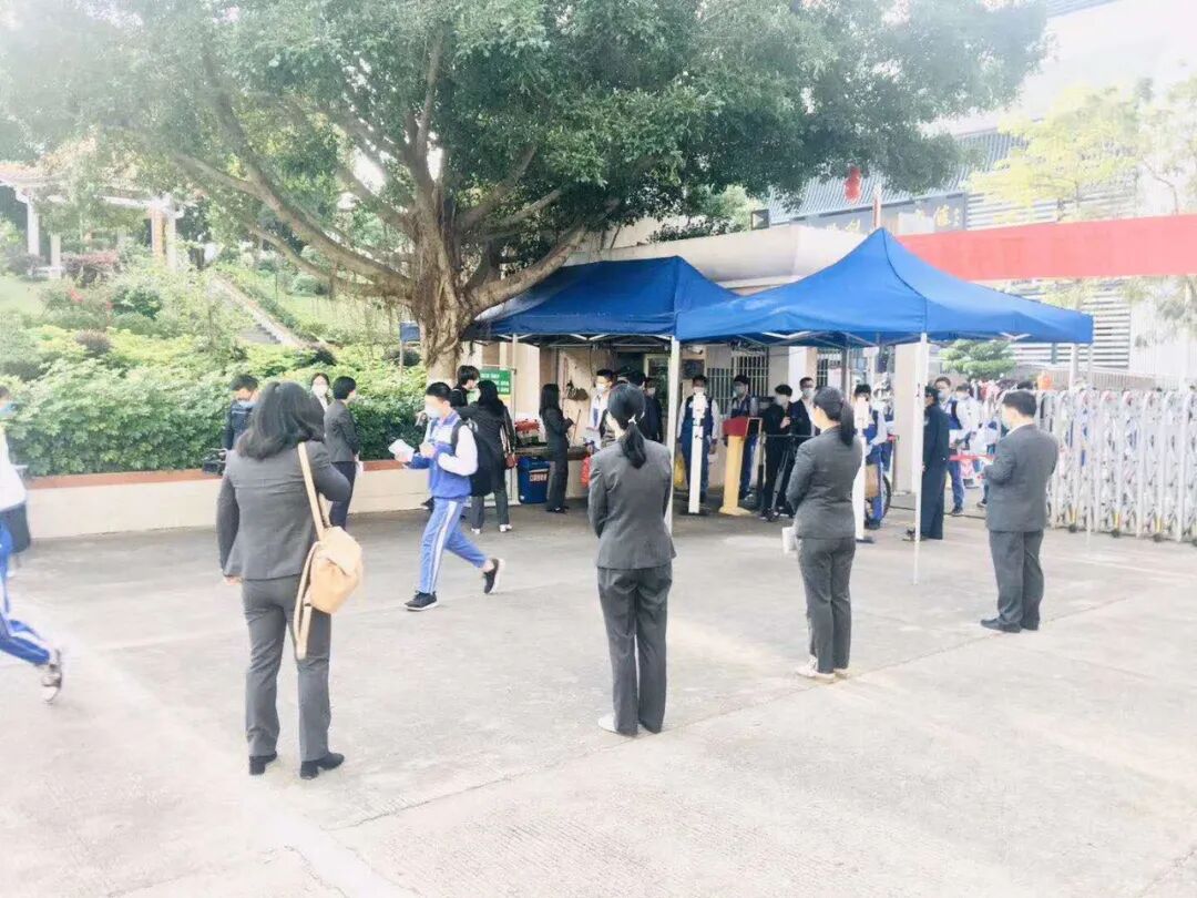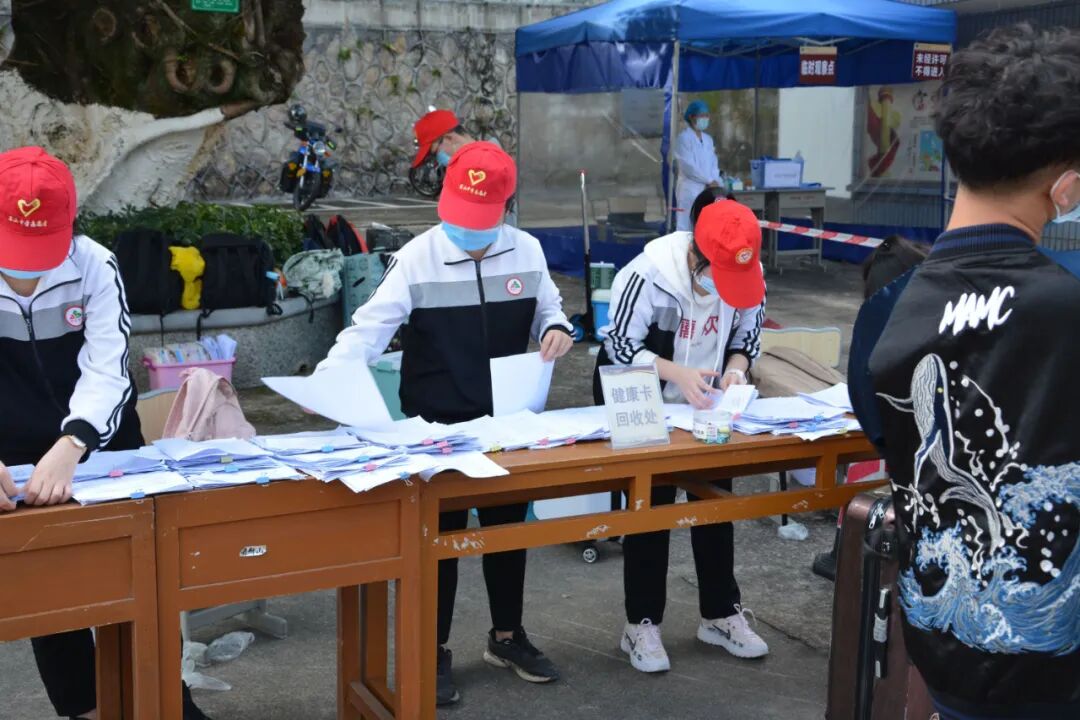 入校门后,志愿者们有序地做好指引、收好健康信息申报表等,你们是好样的!