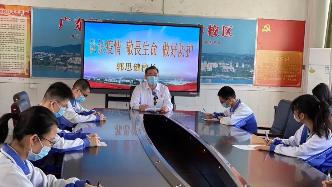 初三于今天上午、高三于今天下午举行返校复课大会。学生齐唱国歌和校歌。老师们向学生讲授疫情防控知识。在初三,郭思健校长发表《认识疫情 敬畏生命 做好防护》为主题的讲话,希望同学们致敬英雄,学会做人;希望同学们学好一身本领,练就一身技能,才能在祖国需要你们的时候冲在前;希望同学们敬畏规则,学会生活;要遵守纪律,严守防控要求,守护生命,守护健康。