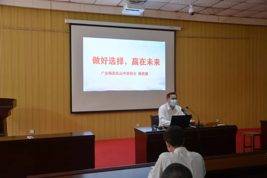 在高三,郭思健校长发表《做好选择,赢在未来》为主题的讲话,他希望在离高考还有70天的时间里,同学们应立足现在,做好选择,赢在未来。要牢记“勇俭爱诚”的校训,选择勇敢,做一个有使命感的人;选择勤俭,做一个砥砺奋进的人;选择大爱,做一个有家国情怀的人;选择诚实,做一个诚实守信的人!
