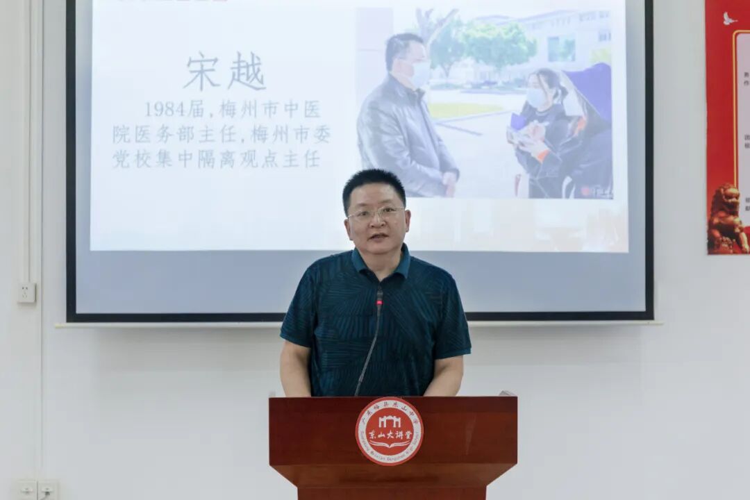 宋越,1984届校友,梅州市中医医院医务部主任,疫情期间担任梅州市党校集中隔离观察点主任