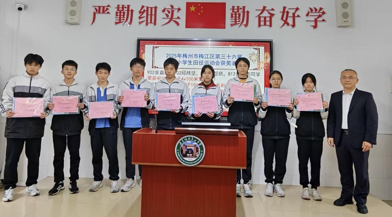田径赛场上,我校运动健儿挥洒汗水、奋勇争先:在梅州市梅江区第三十六届中小学生田径运动会中,余嘉熠、邱炜坚、吴煜祺、黄思埼同学携手夺得初中组男子4x100米第三名;曾旭峰斩获男子1500米第七名与3000米第二名,陈梓杰获男子1500米第二名与800米第五名;余嘉熠同学在男子三级跳、跳远项目中分别取得第四名、第七名,朱镘霓同学获女子跳远第四名与三级跳第二名,黄思埼同学获男子100米第二名与200米第五名,邱炜坚同学获男子100米第七名与60米第二名;李梓如、侯碧筠、刘乐同学也分别在女子1500米、400米、800米项目中跻身八强,用速度与耐力诠释了青春风采。