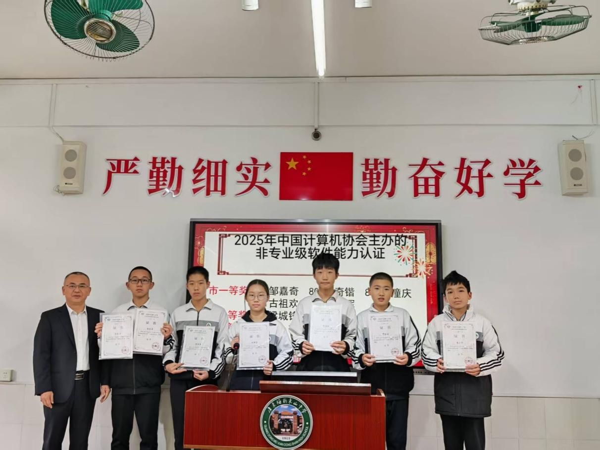 在学科竞赛领域,我校学子捷报频传:2025年中国计算机协会主办的非专业级软件能力认证中,刘元涛同学实力超群,斩获入门级省一等奖与提高级国家级二等奖。李陈宸、田梓淳同学获入门级省二等奖,谢佳锐、陈汉彬、邓锐祺同学获入门级省三等奖。