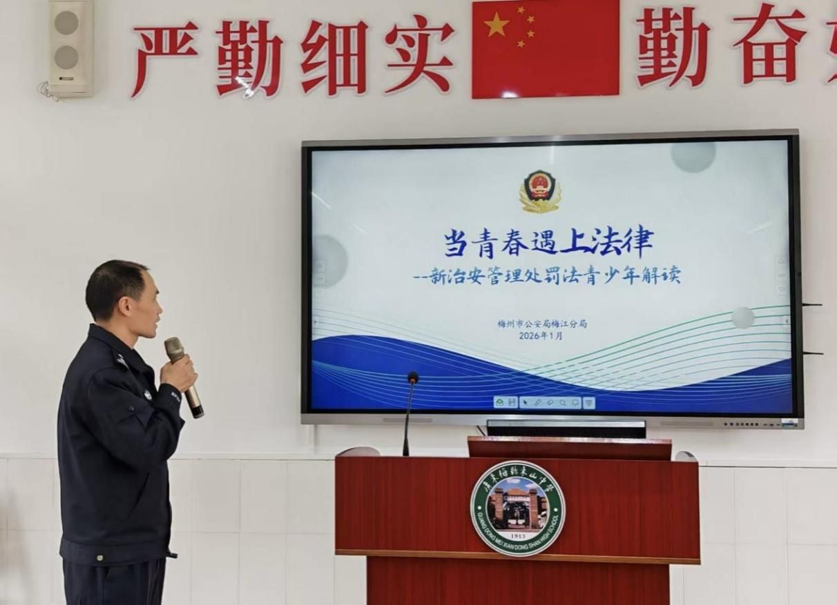 平安是成长的基石,法治是青春的铠甲。学校特邀梅江区公安分局金山派出所副所长、东山中学法治副校长张伟新警官,为全体师生带来了一堂生动深刻的假前法治和安全教育讲座。