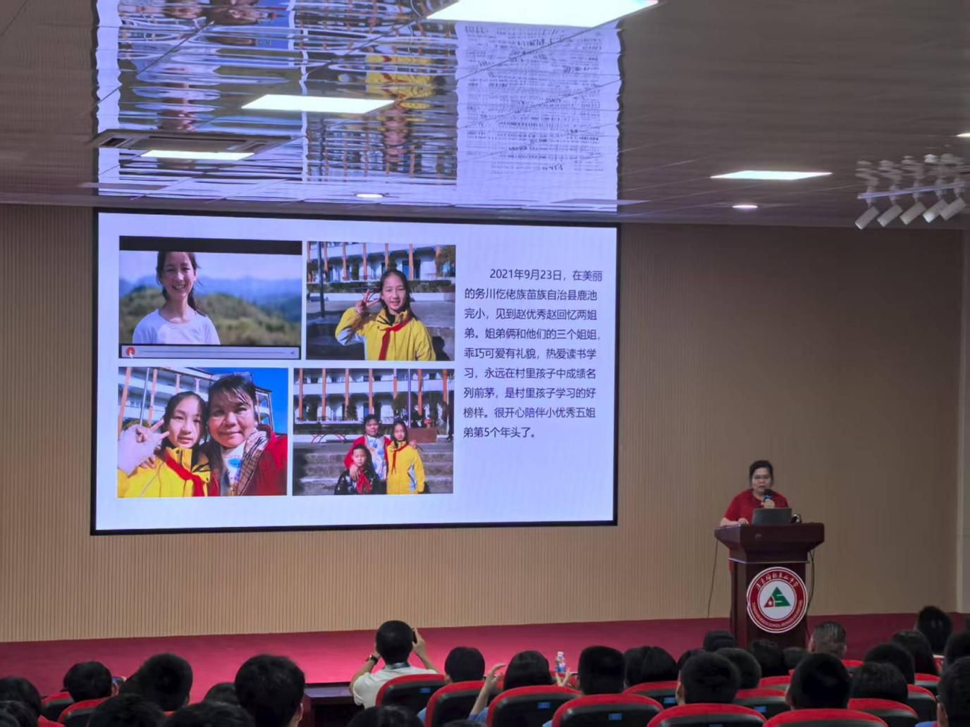 谢春平还生动讲述了自己的支教历程。她主动申请前往云南怒江、贵州遵义支教,借足球与教育之力助力乡村振兴。在师兄刘水的帮助下,她将梅州足球文化引入怒江,促成泸水市格力小学、广东华南虎足球俱乐部与湾仔小学合作,并邀请专业青训教练刘志强授课,让当地孩子首次接触系统化足球教学,甚至迎来谢育新、伍文兵等老国脚亲临指导。自 2021 年,她又把足球教育带去贵州遵义,于务川自治县启动“银杏籽”校园足球项目,助力丝棉完小女子足球队勇夺全县冠军;并在凤冈县推进足球场建设,举办“新芽杯”“童超”等足球联赛,甚至纳入幼儿园小朋友参赛。同时,她还为当地学校筹集空气能热水器、吉他等物资,惠及数千学生。讲述傈僳族女孩小仙花从背弟弟上学到获评三好学生,赵优秀从全县 7000 多名逆袭至中考第 17 名的故事时,现场师生无不为之动容,真切认识到教育对乡村振兴的关键价值。